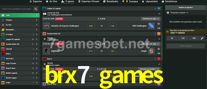 A aposta brx7 games oferece aos jogadores a experiência mais conveniente de apostas em eSports!